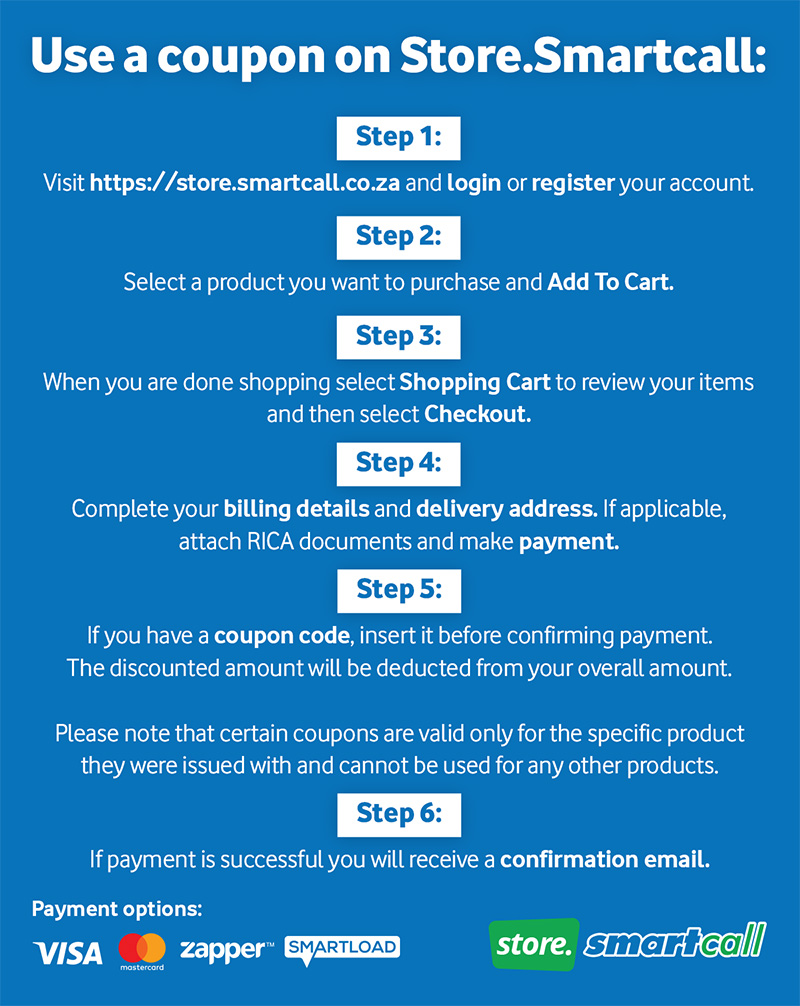 Step 1: Visit https://store.smartcall.co.za and Login or Register your account.